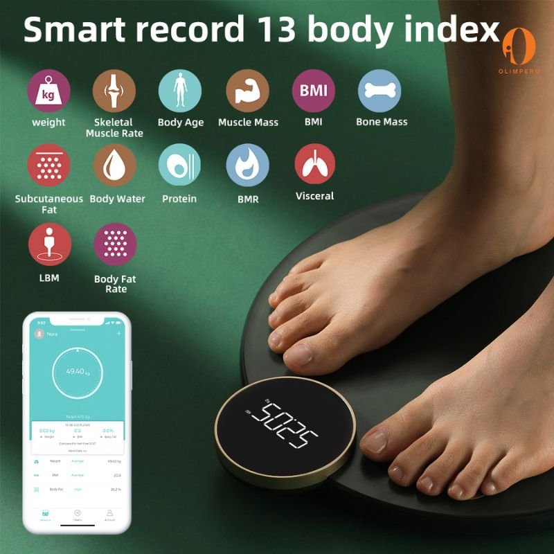 | Funksionet inteligjente | Mat 13 indekse trupore: Pesha, BMI, Masa Muskulare, Yndyra Trupore, Masa e Kockave, Uji Trupor, Proteina, Metabolizmi Bazal (BMR), Yndyra Viscerale, LBM, Mosha trupore etj. |