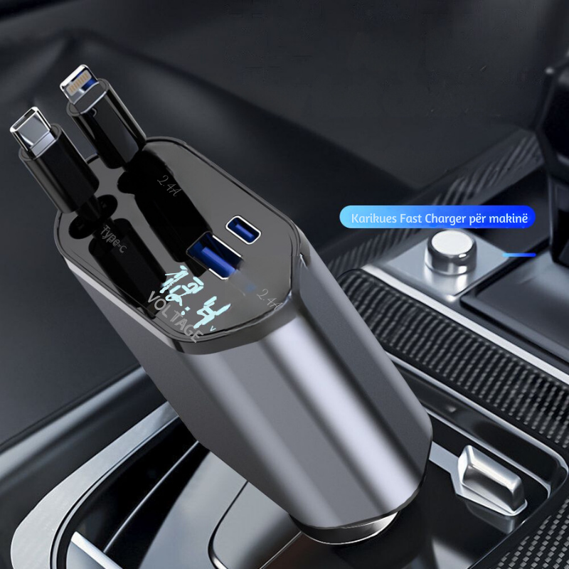 Karikuesi i Shpejtë për Makina 4 në 1 – USB dhe Type-C me Tërheqje: Zgjidhja Ideale për Nevojat Tuaja Elektronike në Lëvizje