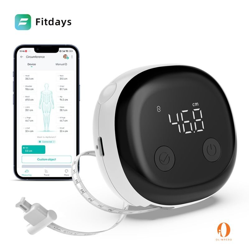 Ky është një metër i zgjuar elektronik që mat me saktësi përimetra të trupit (si beli, krahu, kofsha, gjoksi) dhe i regjistron automatikisht në telefon përmes aplikacionit Fitdays+.