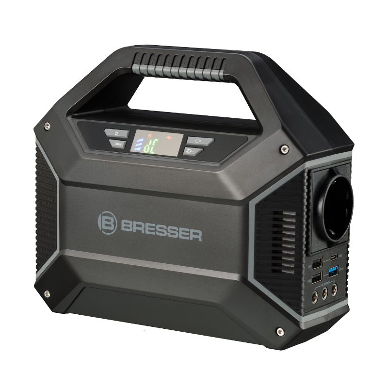 Ruajtje portative e energjisë (power bank) në format maxi nga BRESSER. Me një bateri litiumi jon të fuqishme dhe të rikarikueshme 155Wh dhe opsione të ndryshme lidhjeje, pothuajse të gjitha pajisjet elektronike të zakonshme mund të operohen dhe karikohen. Kjo do të thotë që gjithmonë keni një rezervë të mjaftueshme energjie, qofshin këto për përdorim të fortë në natyrë, në kopsht, ose në rast të një ndërprerjeje energjie në shtëpi.Qëndroni të pavarur nga rrjeti elektrik me një Furnizues Energjie BRESSER. I përshtatshëm për karikimin e smartphone-ve, tabletëve dhe laptopëve, si dhe për furnizimin me energji mobile 12V dhe 230V për pajisje elektrike.