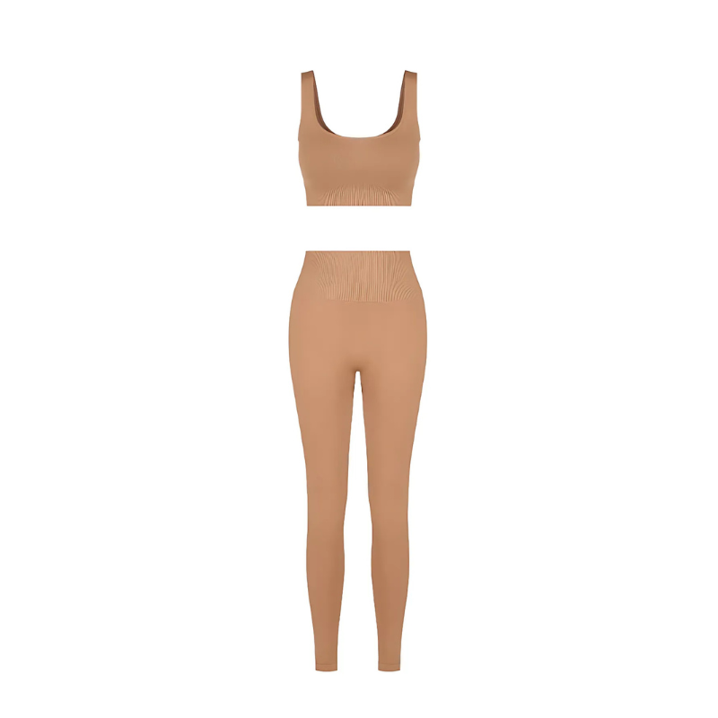 Ky set sportiv dy pjesësh kombinon stilin modern me komoditetin maksimal, duke ju bërë të ndiheni të sigurt dhe elegante në çdo moment. Përshtatet në mënyrë perfekte si për ushtrime në palestër, ecje, joga apo aktivitete të përditshme.